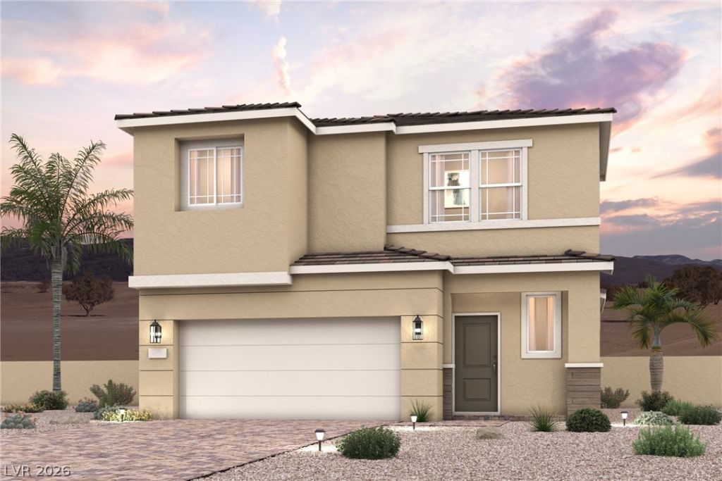 Residence 1602 at Sierra at Skyeview offers stylish two-story living in a unique home design where each residence shares a private drive with neighboring homes, creating a low-maintenance setting in the desirable Skye Canyon planned community. On the main level, enjoy an open-concept layout that seamlessly connects the great room, nook, and spacious kitchen, featuring a generous center island and walk-in pantry. The flow makes it perfect for entertaining or relaxing after a busy day. Upstairs, you'll find two secondary bedrooms, a full bath, and a convenient laundry room. The private owner's suite offers a walk-in closet plus a second slider closet for additional storage, along with a bathroom featuring dual vanities and a walk-in shower.