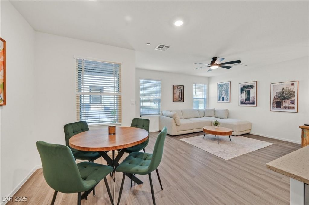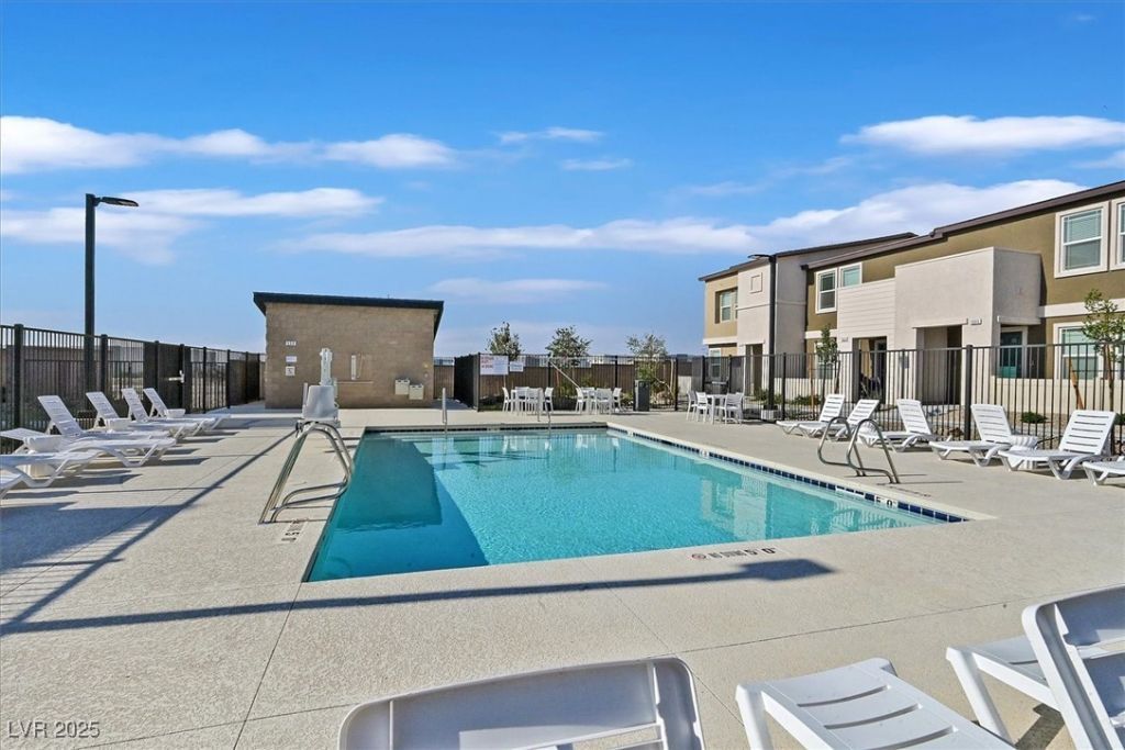 FULLY FURNISHED-just bring your clothes! Sophisticated end-unit townhome?just steps from a resort-style community pool. This brand-new 3-bedroom, 2.5-bath home features luxury vinyl plank flooring, a stunning kitchen with white shaker cabinets, quartz countertops, and premium stainless steel appliances. Smart-home tech, soft water system, reverse osmosis, tankless water heater, refrigerator, washer/dryer?all included. The rear-loading two-car garage offers overhead storage. Upstairs, enjoy three spacious bedrooms plus a versatile loft?complete with a dedicated workspace and an extra bed. Located minutes from the M Resort, Raiders Training Facility, and shopping. Stylish, cozy furnishings and all-new everything?move-in ready and beautifully finished!