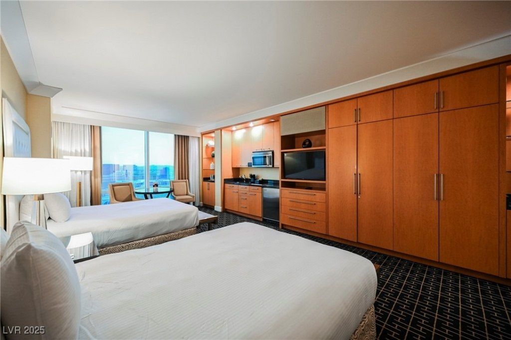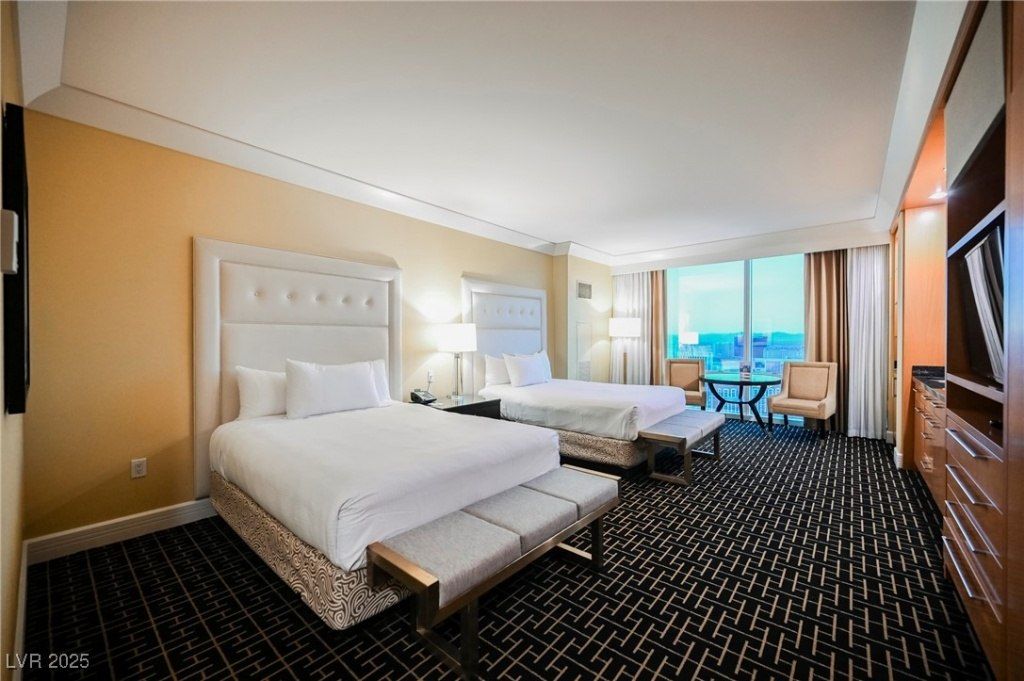 Welcome to Trump Towers! This highly desirable studio features two queen beds and offers breathtaking panoramic views of the entire Las Vegas Strip, along with unobstructed views of the iconic MSG Sphere! Experience luxurious High Rise living in Trump Towers, a 5-star Las Vegas hotel! Fully furnished condo-hotel suite features Sub-Zero, Bosch + Wolf appliances, Italian marble floors, granite counters, maple cabinets, Soothing Jacuzzi tub and floor-to-ceiling glass windows. Amenities include 24-hr security, doorman, front desk concierge, Lobby Bar, pool and spa with cabanas, state-of-the-art fitness center with Technogym equipment, world renowned spa & in-suite dining. Enjoy the sophisticated non-gaming, non-smoking atmosphere of Trump Tower, while having the casual Las Vegas experience within reach! A true lock-and-leave lifestyle! On-site rental program available.